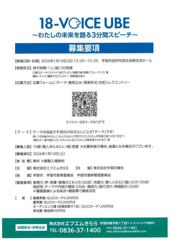 舞台は、2026年1月18日㈰宇部市役所市民交流棟交流ホール。