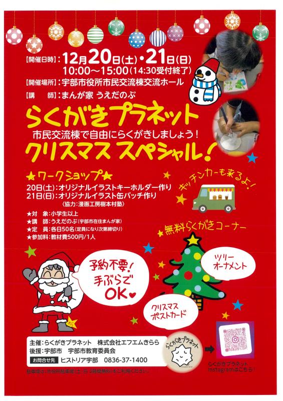クリスマスを前に宇部市役所市民交流棟交流ホールで子ども達にはたまらないイベントの開催です♪