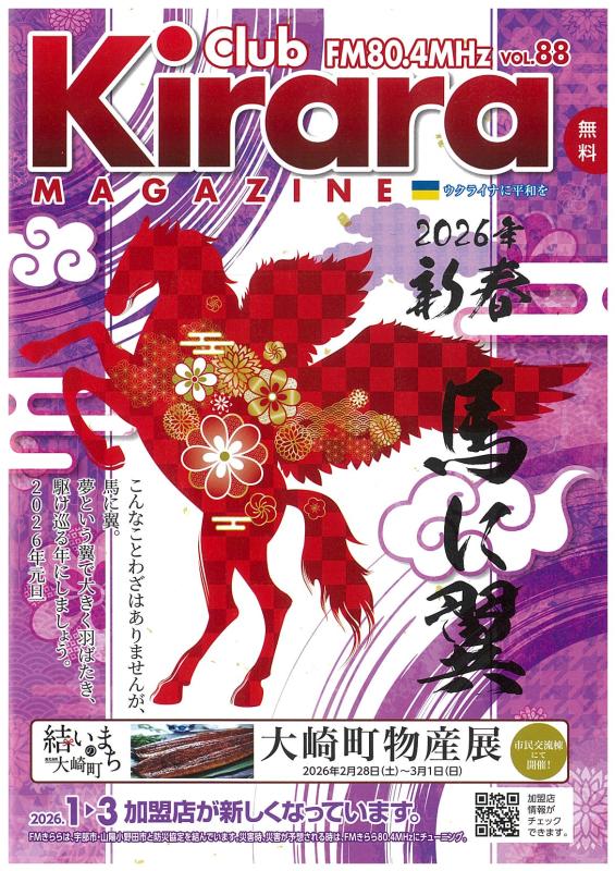 Vol.88は、2026年新春市長対談や加盟店情報にイベント情報など盛りだくさん!お近くの加盟店またはエフエムきらら、ヒストリア宇部に置いてあります。